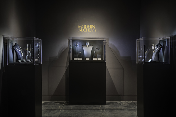 The pedestal cases had lift off clear acrylic tops, that were secured with snake-eye security screws. Inside featured two multi head 1 watt LED post lights, one set in 3000 Kelvin and the other set in 6000 Kelvin. These are wired under the 25mm thick MDF top board to the separate transformers and connected to a 6 meter long power cable. These cases also had a dark grey fabric covered 13mm thick display board to receive the jewelry holders, risers and busts. The cases were fabricated using 13mm thick MDF, with the top board having threaded inserts on two opposing sides to allow attachment of the tops that were fabricated using 6mm clear cast acrylic. The small cases have 4 adjustable feet the large cases have 6.
